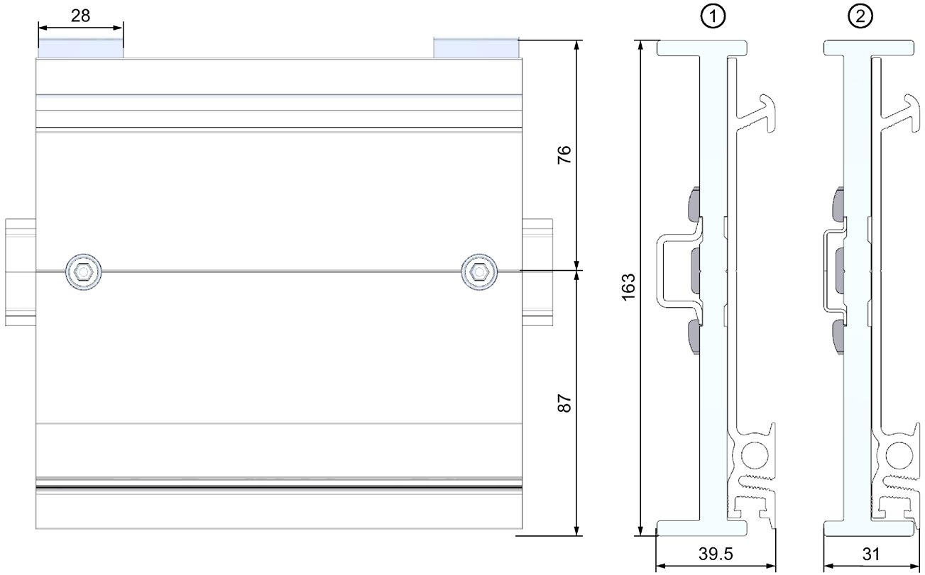 ● Standart montaj rayı adaptörü, S7-1500 / ET200MP montaj rayının standart 35 mm montaj raylarına monte edilmesini mümkün kılar.