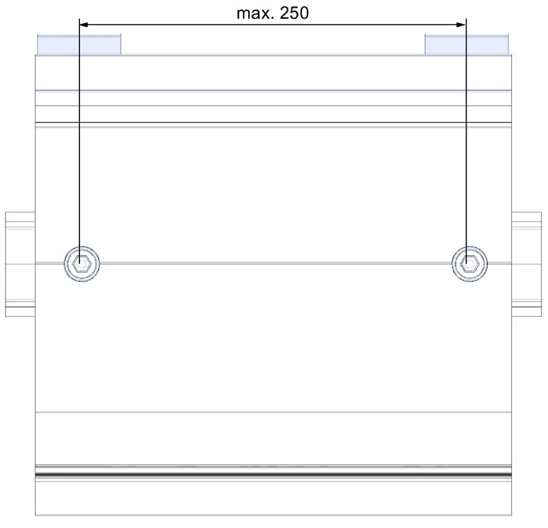 ● En iyi stabiliteyi sağlamak için, iki DIN rayı adaptörü arasındaki boşluk 250 mm veya daha az olmamalıdır.