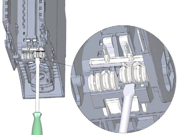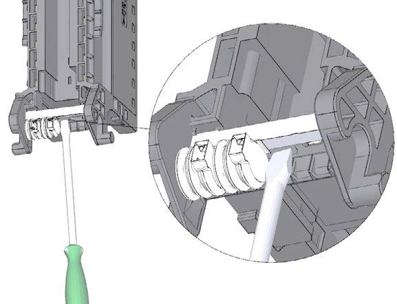 1. Yeni bir G / Ç modülü için, ön konektör için belirlenmiş mekanik kodlama öğesinin yarısını kırmak için bir tornavida kullanın.
